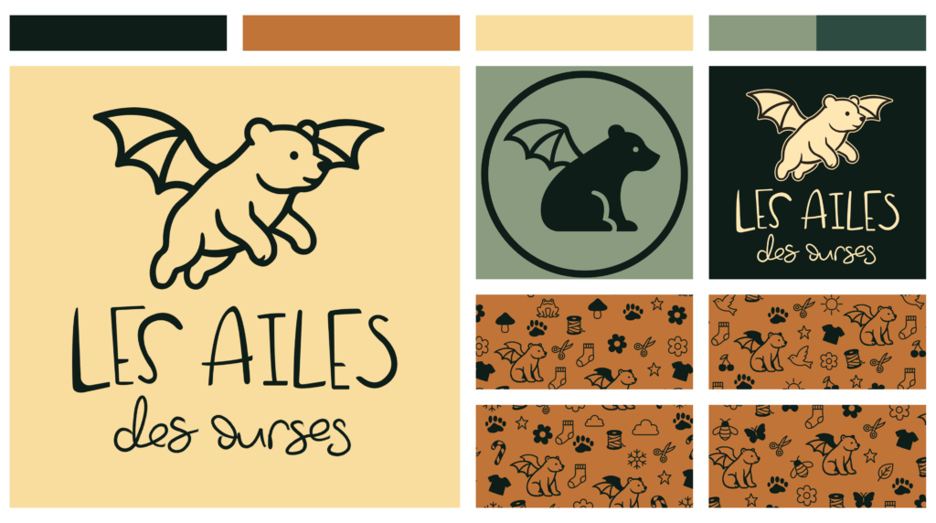 Ce projet en freelance consiste à accompagner une auto-entrepreneuse dans le lancement de sa marque de vêtements : Les Ailes des Ourses, une marque de pièces et accessoires faits main, en tissus, avec une dimension écoresponsable.